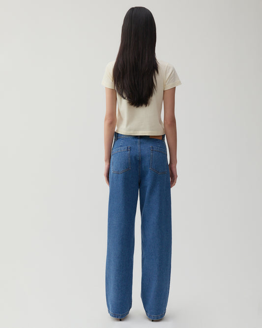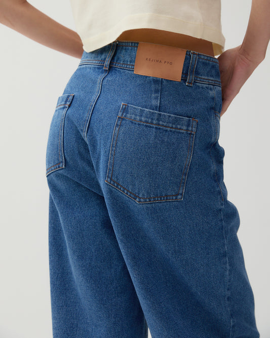 The Maude trousers feature a high-rise waist and a relaxed, straight-leg fit. Crafted from organic cotton denim, they offer both comfort and style, making them a versatile addition to any wardrobe.