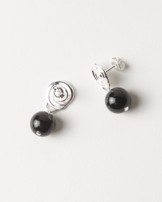 Swirl Bead Earrings Silver Plated with Onyx
