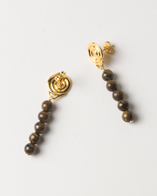 Swirl Petite Droplet Earrings Gold Plated with Tiger's Eye