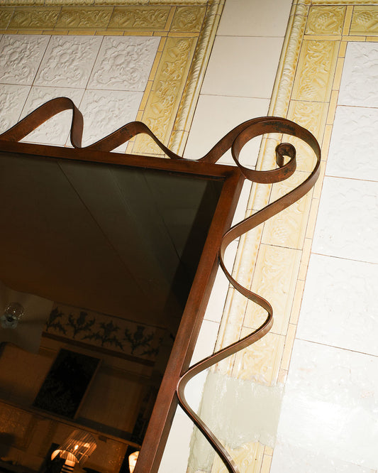 This made-to-order full-length swirl mirror designed by Rejina Pyo in collaboration with Barnaby Lewis. Expressive yet restrained, the hand-sketched silhouette reflects Rejina Pyo’s signature approach to form, where softness and structure exist in quiet dialogue. Crafted from wrought iron, the mirror brings a sense of movement and material depth to the space.