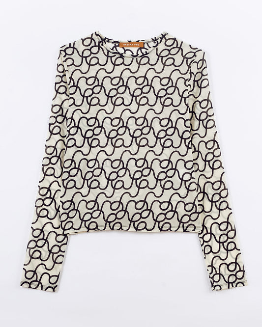 A fitted form in soft-to-touch mesh long sleeve top with a crew neckline, the Rejina Pyo Zoya top is an ultra light slightly sheer style with stretch that lets the print do the talking. The Off-White colourway incorporates the brand's insignia into a continuous pattern.