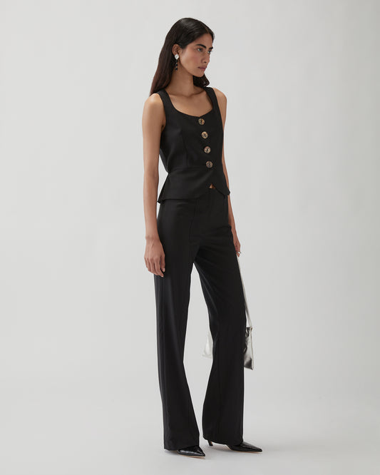 The Athena Trousers are tailored from soft wool suiting for a refined drape. Designed with a subtle flare at the ankle to create a flattering, elongated silhouette. Pair with the Eunice Vest and Noemie Blazer for an effortless tailored ensemble.