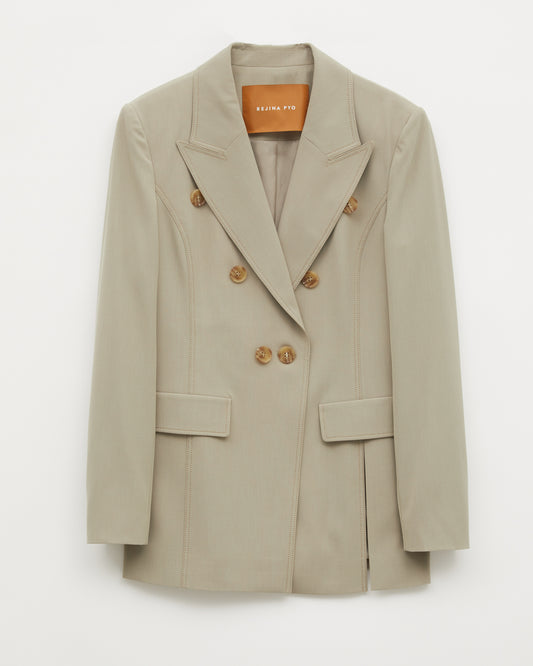 The Rejina Pyo Arden Blazer in Suiting Artichoke is designed with a fitted silhouette, detailed with symmetric double-breasted button fastening and front pockets. Fully lined.