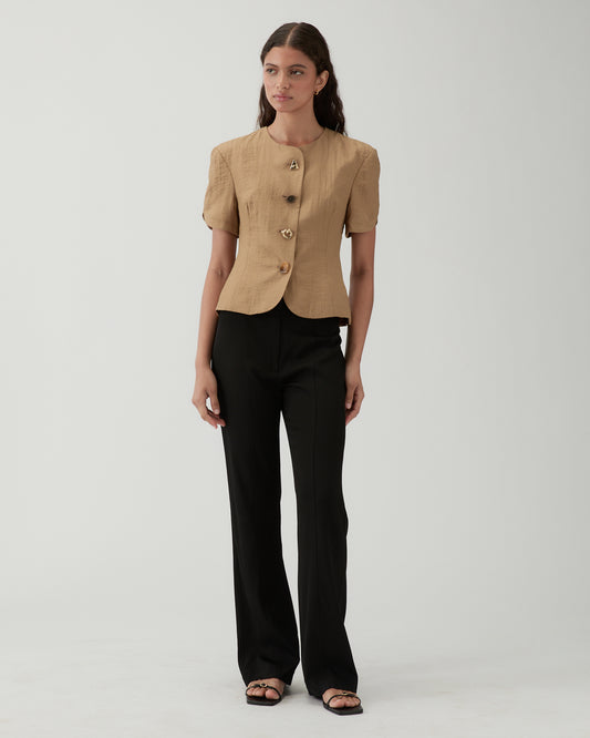 The Cody Blouse is a versatile piece that can be worn as a summer top or short sleeve jacket crafted from viscose linen. Enhance your look by pairing it with the Freya trousers or Doris shorts for a tailored ensemble. Adorned with Rejina Pyo's signature mismatched buttons, this piece adds a unique and special touch to any outfit.