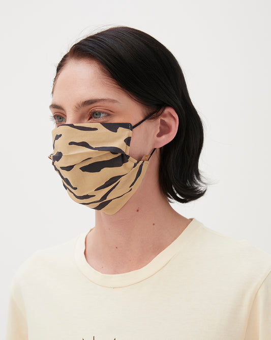 The Rejina Pyo Face Covering in Cotton Tiger is shaped with a pleated construction and elasticated straps for a comfortable fit. The external layer of our face coverings is made from upcycled Rejina Pyo archive material with an organic cotton lining.