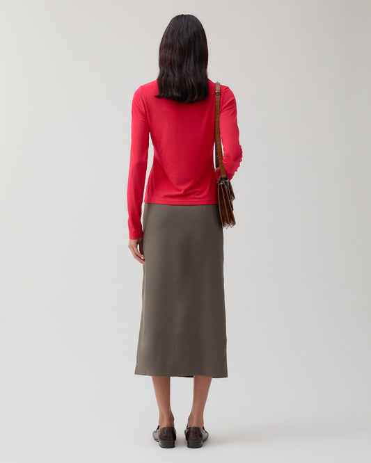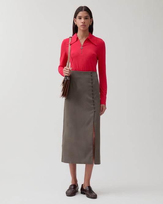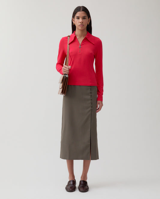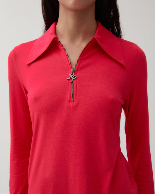 The Rejina Pyo Jasmine Top in Jersey Red features a front zip fastening with a custom monogram zip puller that is adjustable to have an open neckline or polo style.