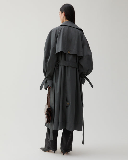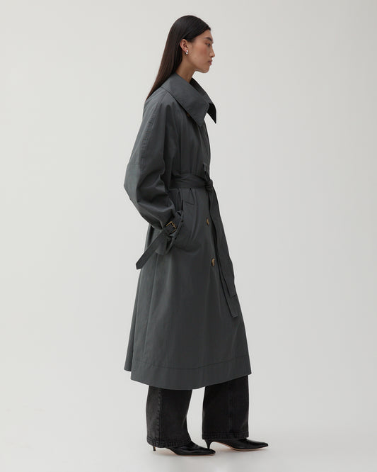 Romy Trenchcoat Cotton Blend Twill Charcoal